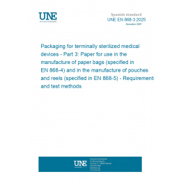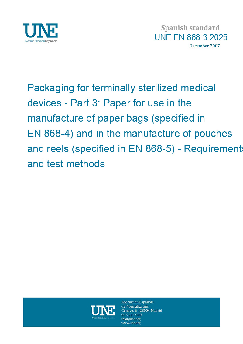 This standard UNE EN 868-3:2025 Packaging for terminally sterilized medical devices - Part 3: Paper for use in the manufacture of paper bags (specified in EN 868-4) and in the manufacture of pouches and reels (specified in EN 868-5) - Requirements and test methods is classified in these ICS categories: