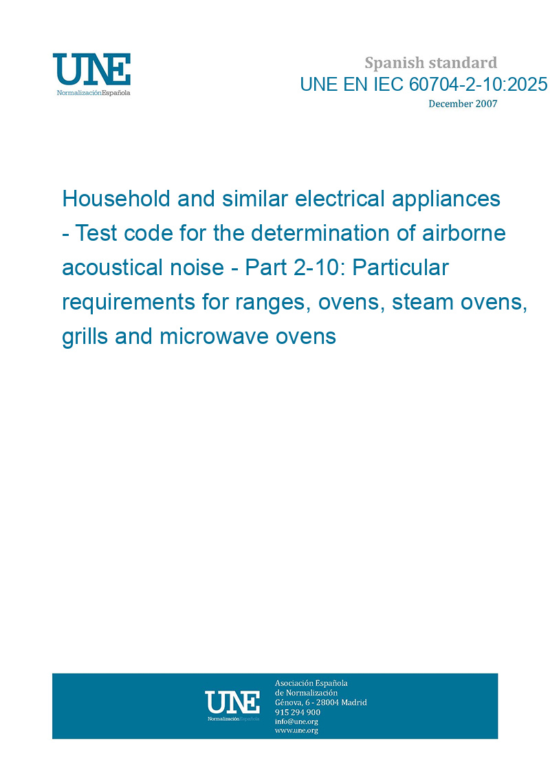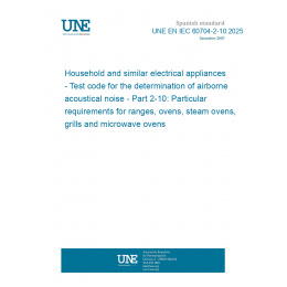This standard UNE EN IEC 60704-2-10:2025 Household and similar electrical appliances - Test code for the determination of airborne acoustical noise - Part 2-10: Particular requirements for ranges, ovens, steam ovens, grills and microwave ovens is classified in these ICS categories: