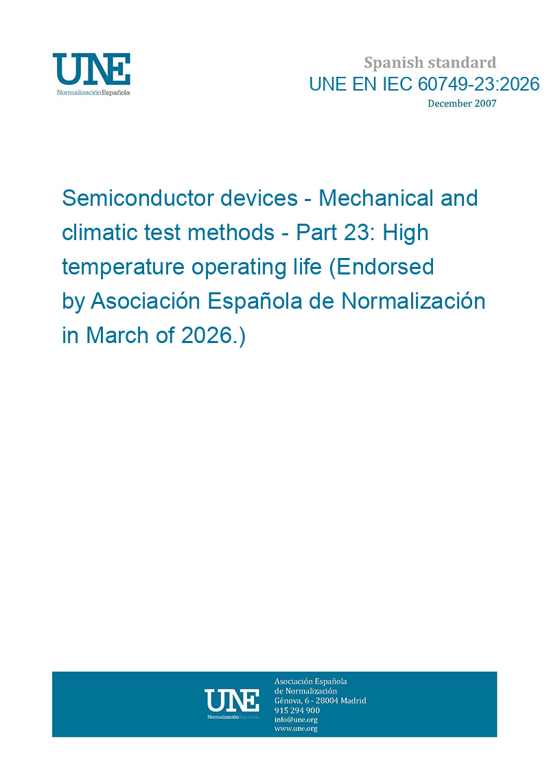 Dispositivos semiconductores. Métodos de ensayo mecánicos y climáticos. Parte 23: Vida de funcionamiento a alta temperatura. (Ratificada por la Asociación Española de Normalización en marzo de 2026.)