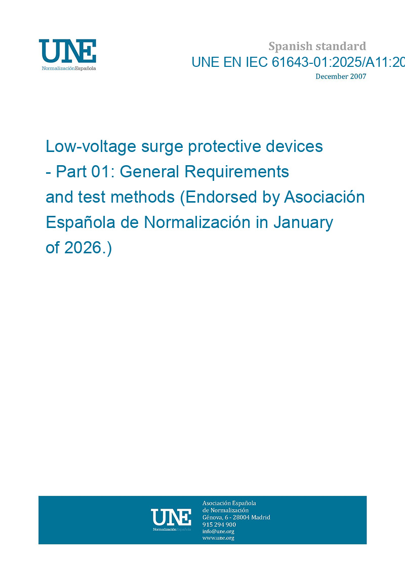 Low-voltage surge protective devices - Part 01: General Requirements and test methods (Endorsed by Asociación Española de Normalización in January of 2026.)