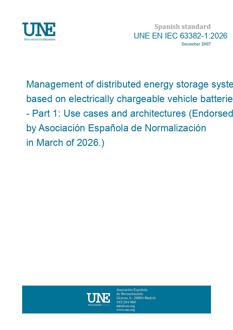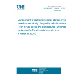 Gestión de sistemas distribuidos de almacenamiento de energía basados en vehículos cargables eléctricamente. Parte 1: Casos de uso y arquitecturas (Ratificada por la Asociación Española de Normalización en marzo de 2026.)
