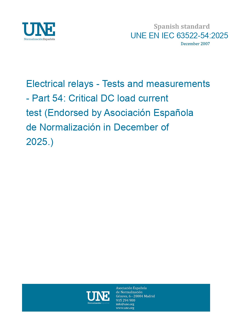 Relés eléctricos. Ensayos y medidas. Parte 54: Ensayo de corriente continua de carga crítica. (Ratificada por la Asociación Española de Normalización en diciembre de 2025.)