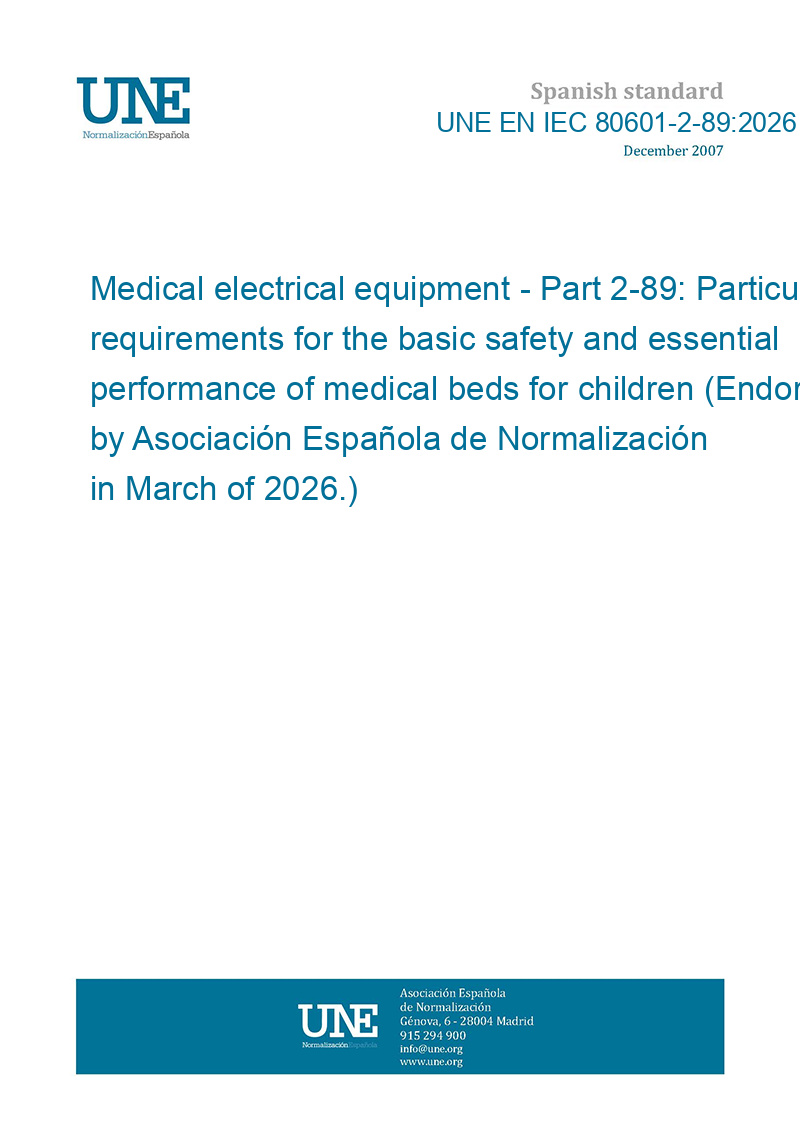 Medical electrical equipment - Part 2-89: Particular requirements for the basic safety and essential performance of medical beds for children (Endorsed by Asociación Española de Normalización in March of 2026.)