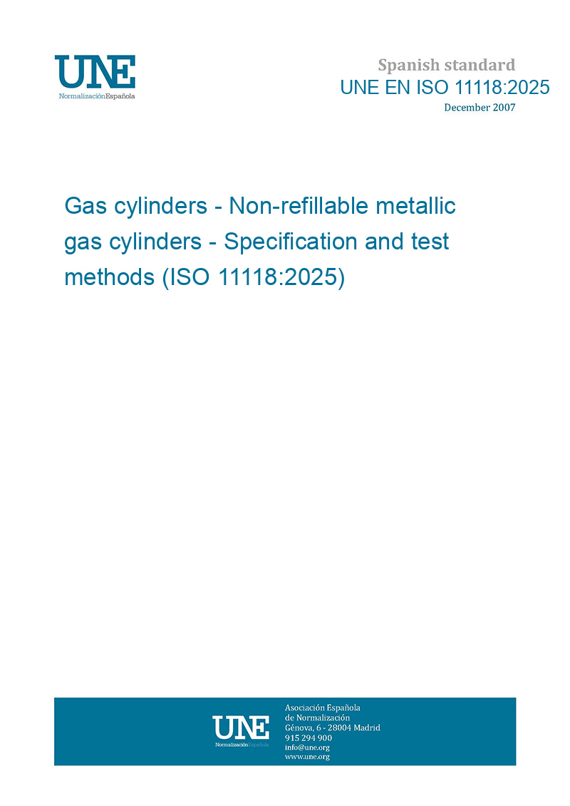 Botellas de gas. Botellas de gas metálicas no recargables. Especificaciones y métodos de ensayo. (ISO 11118:2025).