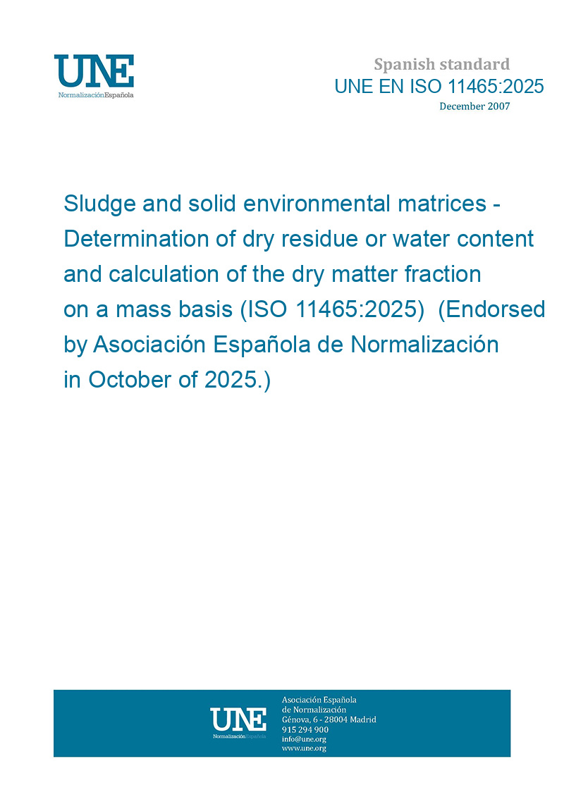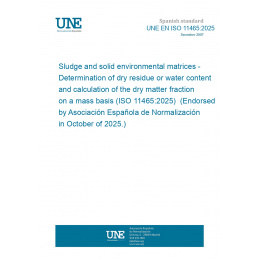 Lodos y matrices ambientales sólidas. Determinación del residuo seco o contenido de agua y cálculo de la fracción de materia seca en base a masa (ISO 11465:2025) (Ratificada por la Asociación Española de Normalización en octubre de 2025.)
