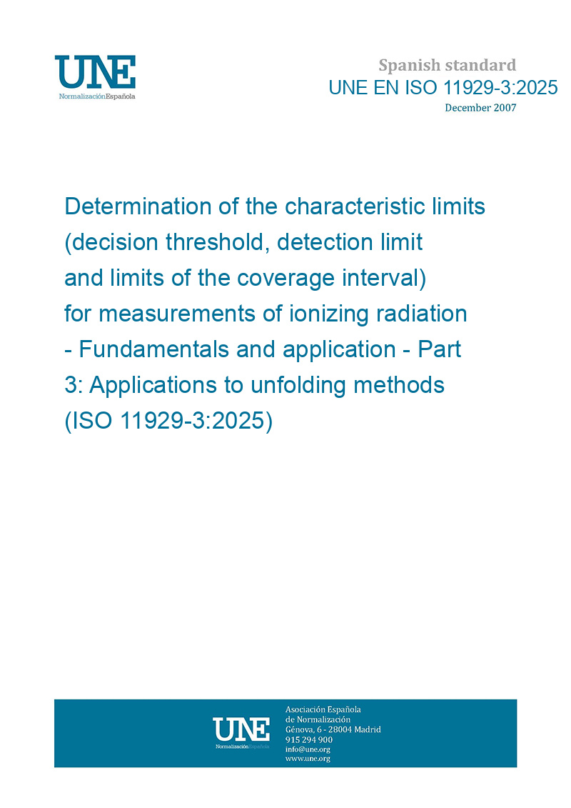 Determinación de los límites característicos (umbral de decisión, límite de detección y límites del intervalo de cobertura) para mediciones de radiación ionizante. Fundamentos y aplicación. Parte 3: Aplicaciones a métodos de desdoblamiento. (ISO 11929-3:2025) (Ratificada por la Asociación Española de Normalización en febrero de 2026.)