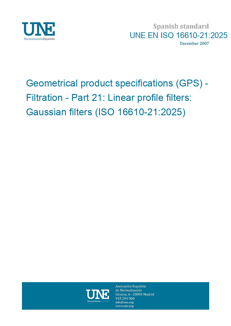 Especificación geométrica de productos (GPS). Filtrado. Parte 21: Filtros de perfiles lineales: Filtros gausianos. (ISO 16610-21:2025).