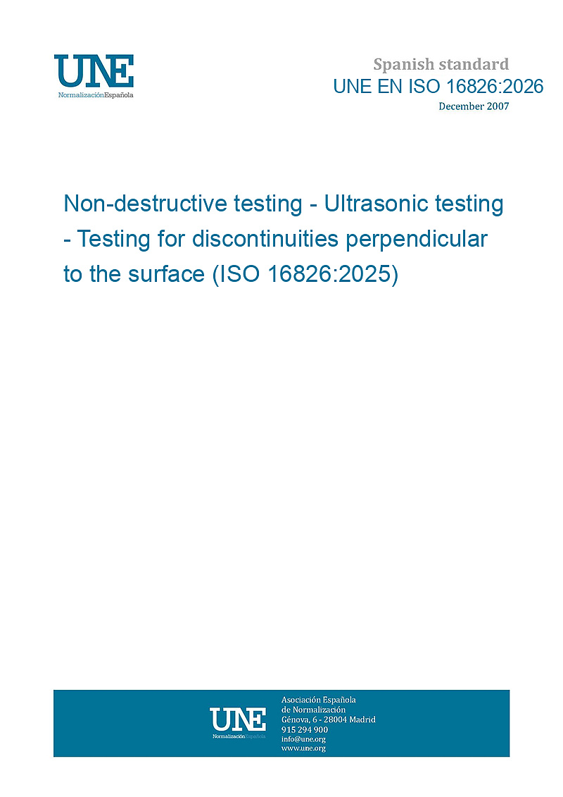 UNE EN ISO 16826:2026 - Non-destructive testing - Ultrasonic testing - Testing for discontinuities perpendicular to the surface (ISO 16826:2025)