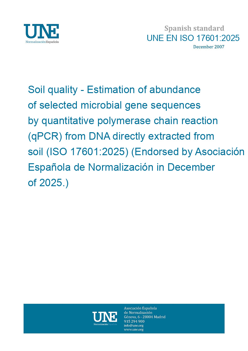 Soil quality - Estimation of abundance of selected microbial gene sequences by quantitative polymerase chain reaction (qPCR) from DNA directly extracted from soil (ISO 17601:2025) (Endorsed by Asociación Española de Normalización in December of 2025.)