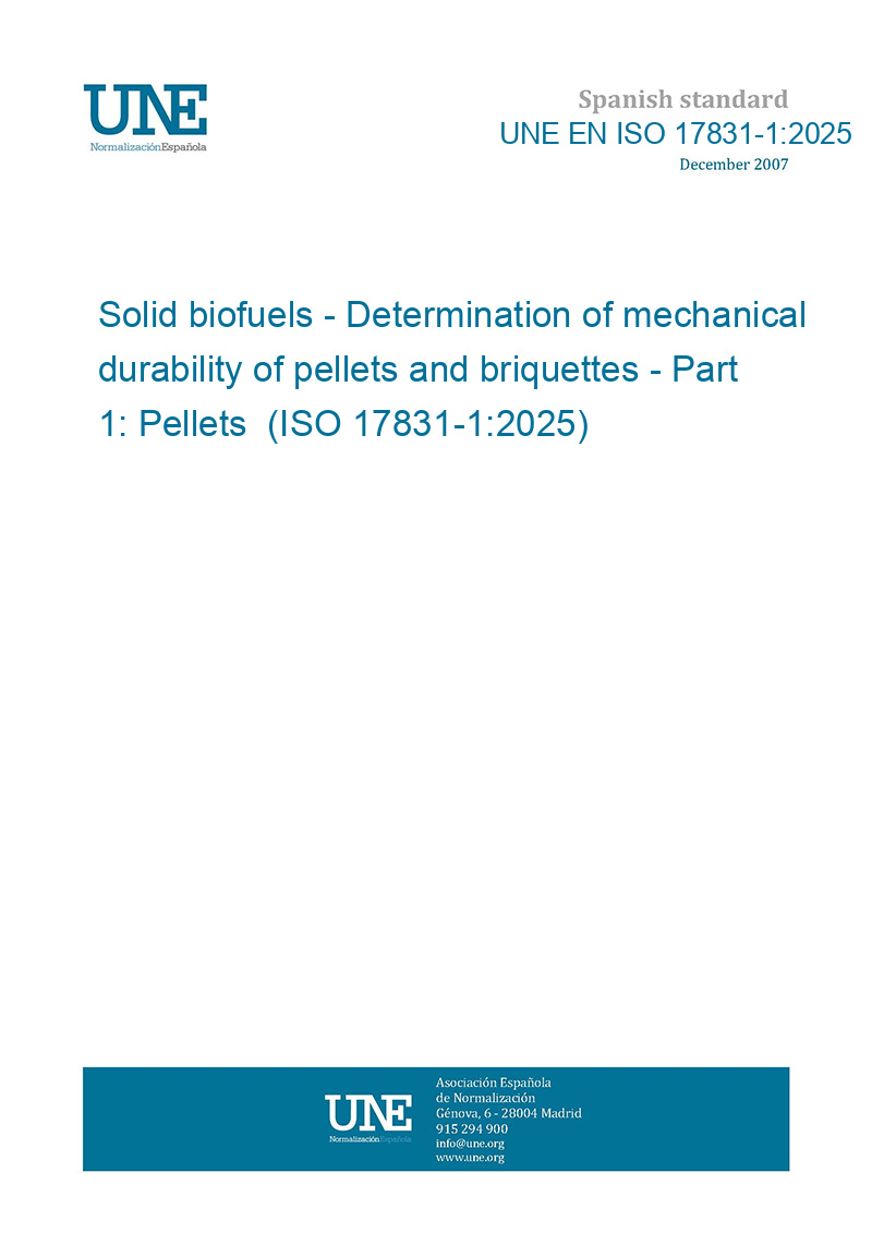 Biocombustibles sólidos. Determinación de la durabilidad mecánica de pélets y briquetas. Parte 1: Pélets. (ISO 17831-1:2025).
