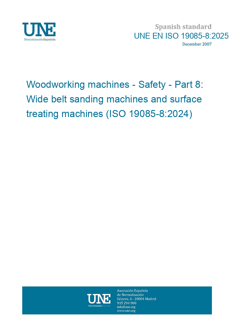 Máquinas para trabajar la madera. Seguridad. Parte 8: Máquinas lijadoras de banda ancha y máquinas de tratamiento de superficies. (ISO 19085-8:2024).