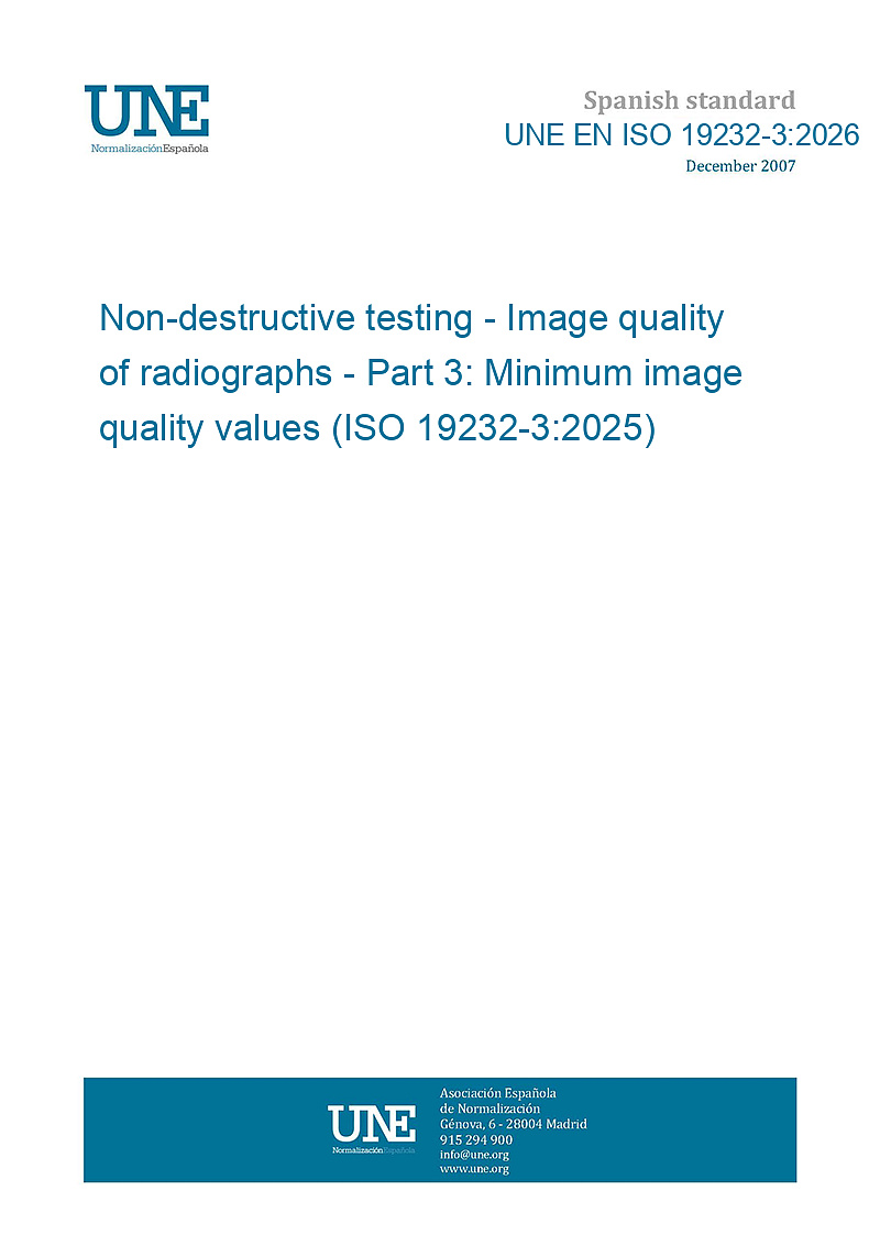 Ensayos no destructivos. Calidad de imagen de las radiografías. Parte 3: Valores mínimos de calidad de imagen. (ISO 19232-3:2025).
