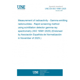 Medición de la radiactividad. Radionucleidos emisores de rayos gamma. Método de detección rápida mediante espectrometría de rayos gamma con detector de centelleo. (ISO 19581:2025) (Ratificada por la Asociación Española de Normalización en noviembre de 2025.)