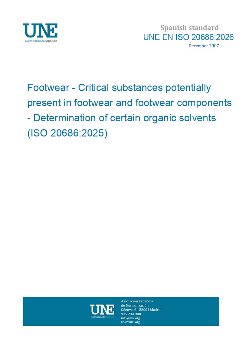 This standard UNE EN ISO 20686:2026 Footwear - Critical substances potentially present in footwear and footwear components - Determination of certain organic solvents (ISO 20686:2025) is classified in these ICS categories: