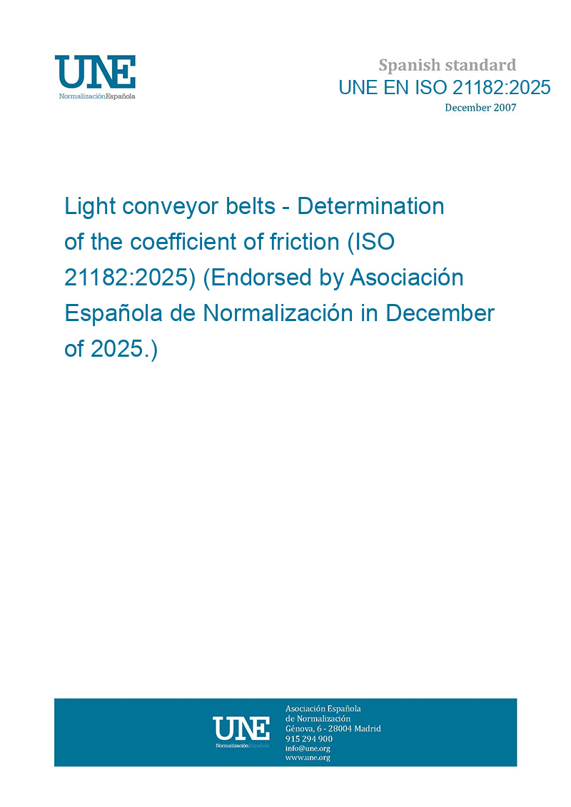 Cintas transportadoras ligeras. Determinación del coeficiente de fricción (ISO 21182:2025) (Ratificada por la Asociación Española de Normalización en diciembre de 2025.)