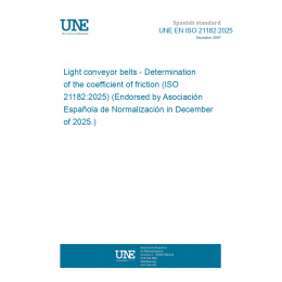 This standard UNE EN ISO 21182:2025 Light conveyor belts - Determination of the coefficient of friction (ISO 21182:2025) (Endorsed by Asociación Española de Normalización in December of 2025.) is classified in these ICS categories: