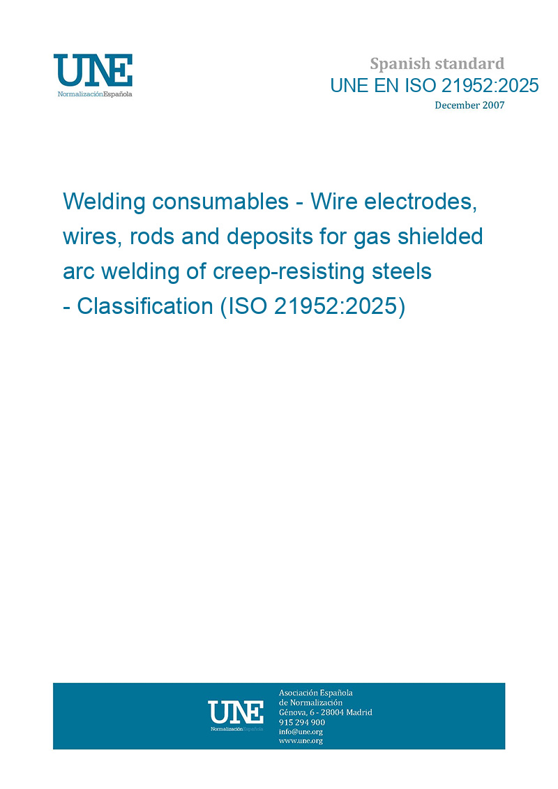 This standard UNE EN ISO 21952:2025 Welding consumables - Wire electrodes, wires, rods and deposits for gas shielded arc welding of creep-resisting steels - Classification (ISO 21952:2025) is classified in these ICS categories: