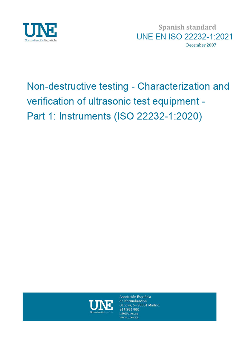 Ensayos no destructivos. Caracterización y verificación del equipo de ensayo por ultrasonidos. Parte 1: Aparatos. (ISO 22232-1:2020).