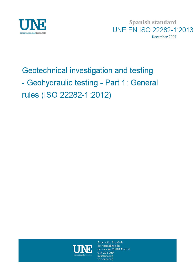 Investigación y ensayos geotécnicos. Ensayos hidrogeológicos. Parte 1: Reglas generales. (ISO 22282-1:2012).