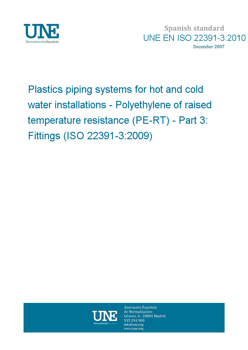 Sistemas de canalización en materiales plásticos para instalaciones de agua caliente y fría. Polietileno resistente a la temperatura (PE-RT). Parte 3: Accesorios. (ISO 22391-3:2009)