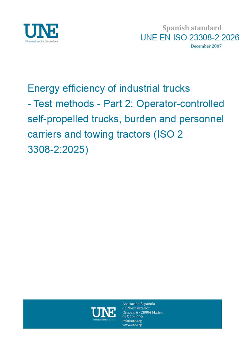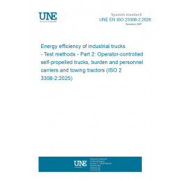 Eficiencia energética de las carretillas de manutención. Métodos de ensayo. Parte 2: Carretillas autopropulsadas controladas por operador, tractores para remolcar y carretillas transportadoras de carga. (ISO 23308-2:2025).