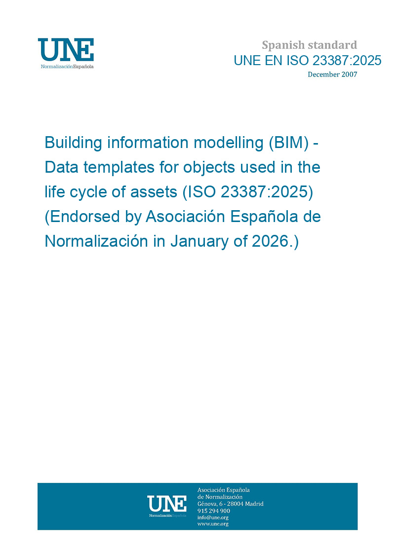 Building information modelling (BIM) - Data templates for objects used in the life cycle of assets (ISO 23387:2025) (Endorsed by Asociación Española de Normalización in January of 2026.)