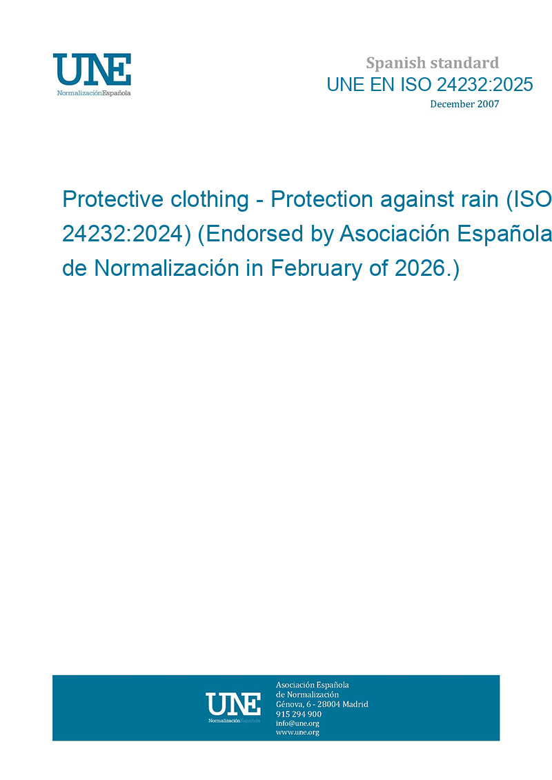 Ropa de protección. Protección contra la lluvia. (ISO 24232:2024) (Ratificada por la Asociación Española de Normalización en febrero de 2026.)