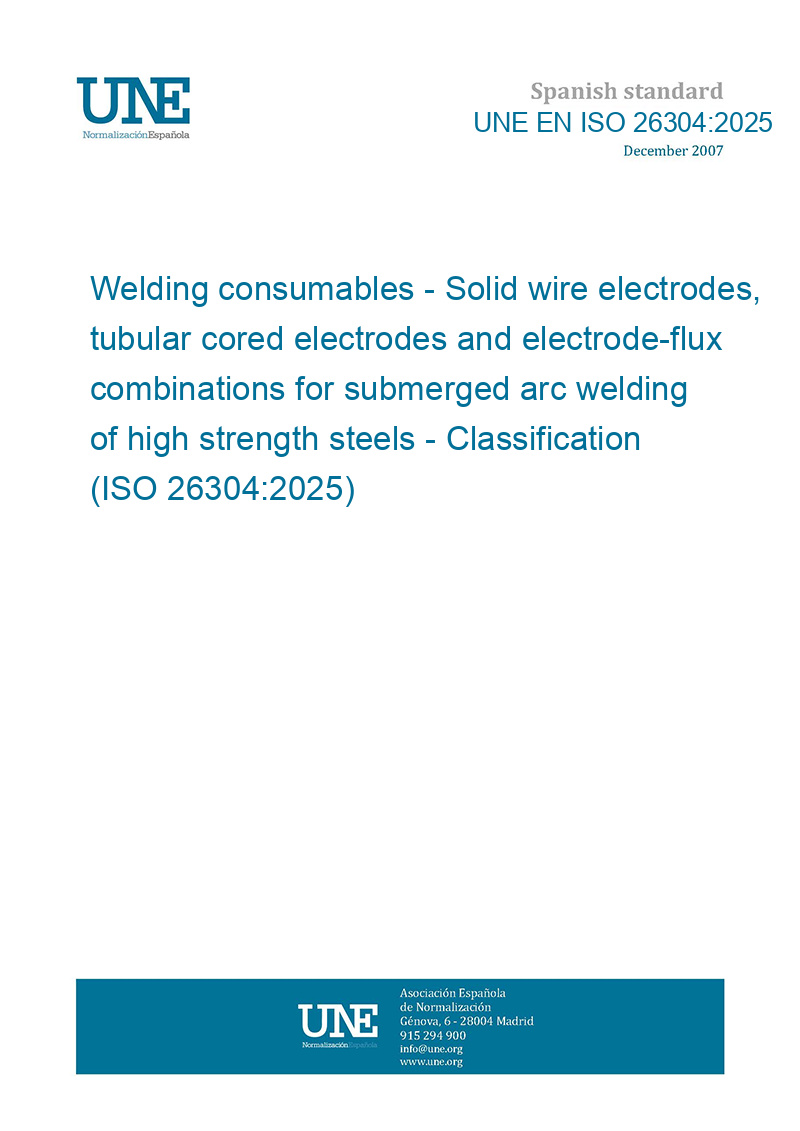Consumibles de soldeo. Electrodos de alambre macizo, electrodos tubulares y combinaciones electrodo-fundente para el soldeo por arco sumergido de aceros de alta resistencia. Clasificación. (ISO 26304:2025).
