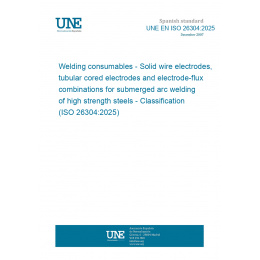 This standard UNE EN ISO 26304:2025 Welding consumables - Solid wire electrodes, tubular cored electrodes and electrode-flux combinations for submerged arc welding of high strength steels - Classification (ISO 26304:2025) is classified in these ICS categories: