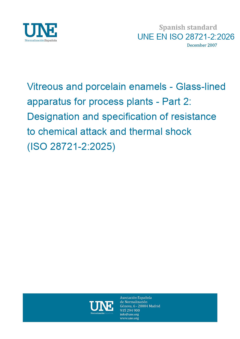 Esmaltes vítreos y de porcelana. Aparatos esmaltados para instalaciones industriales. Parte 2: Designación y especificación de la resistencia al ataque químico y al choque térmico. (ISO 28721-2:2025).