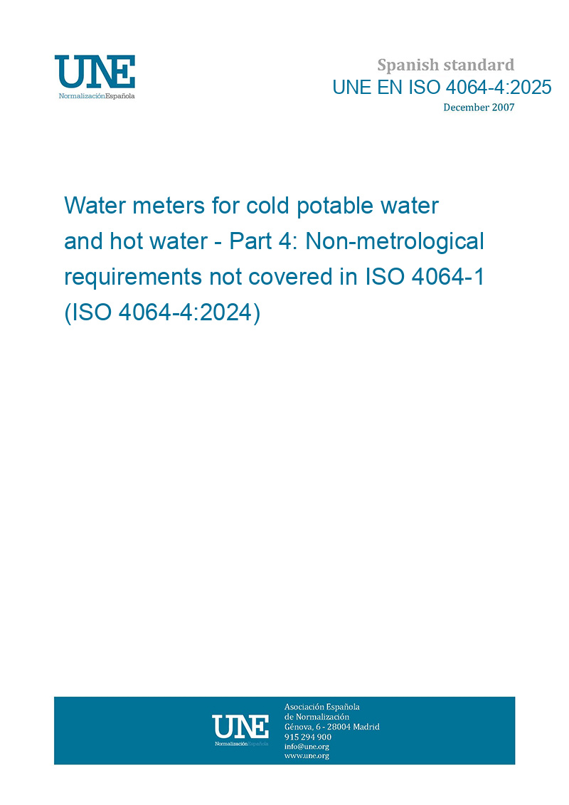 Contadores de agua para agua fría potable y agua caliente. Parte 4: Requisitos no metrológicos no cubiertos por la Norma ISO 4064-1. (ISO 4064-4:2024).