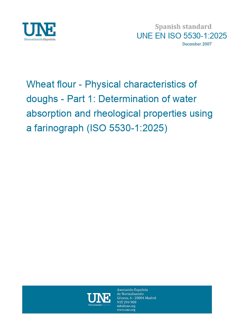 Harina de trigo. Características físicas de las masas. Parte 1: Determinación de la absorción de agua y propiedades reológicas utilizando un farinógrafo. (ISO 5530-1:2025).