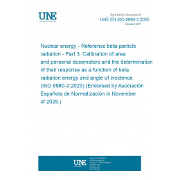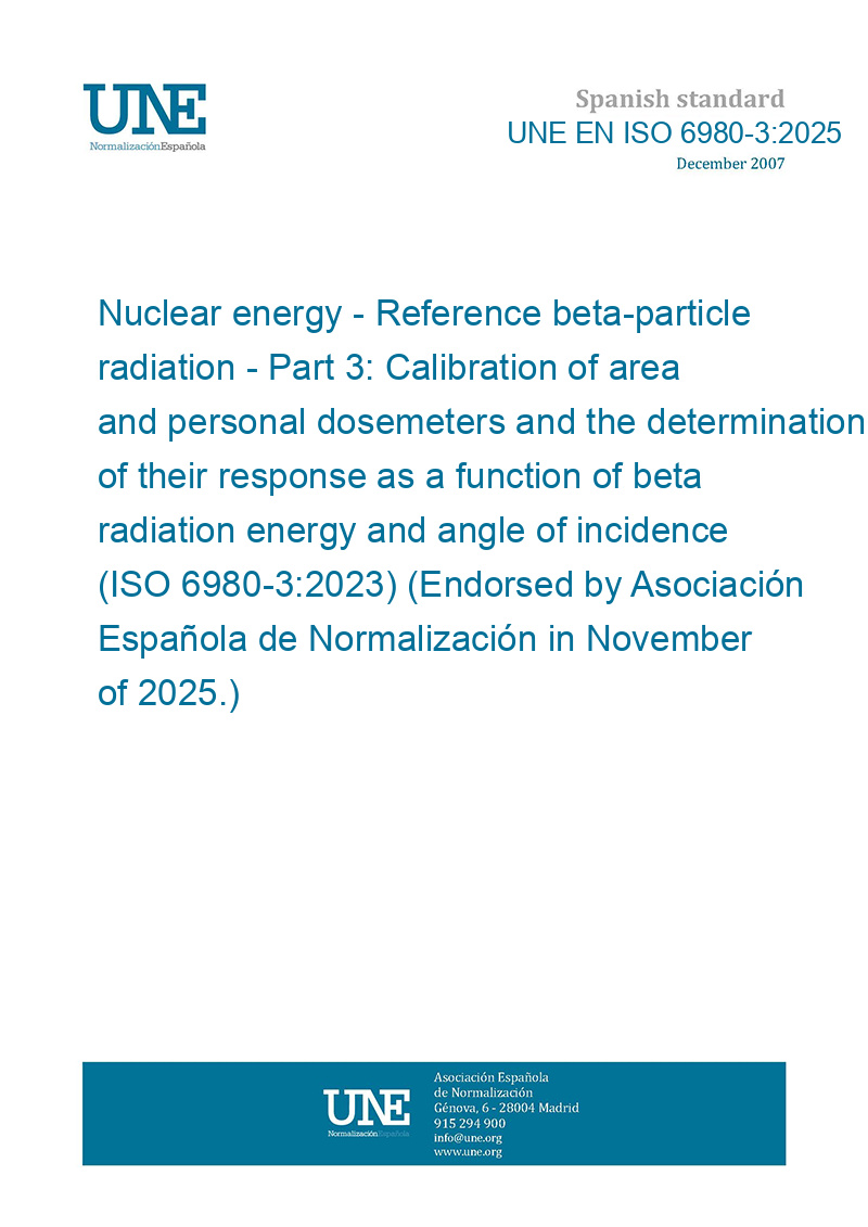 UNE EN ISO 6980-3:2025 Nuclear energy - Reference beta-particle radiation - Part 3: Calibration of area and personal dosemeters and the determination of their response as a function of beta radiation energy and angle of incidence (ISO 6980-3:2023) (Endorsed by Asociación Española de Normalización in November of 2025.)