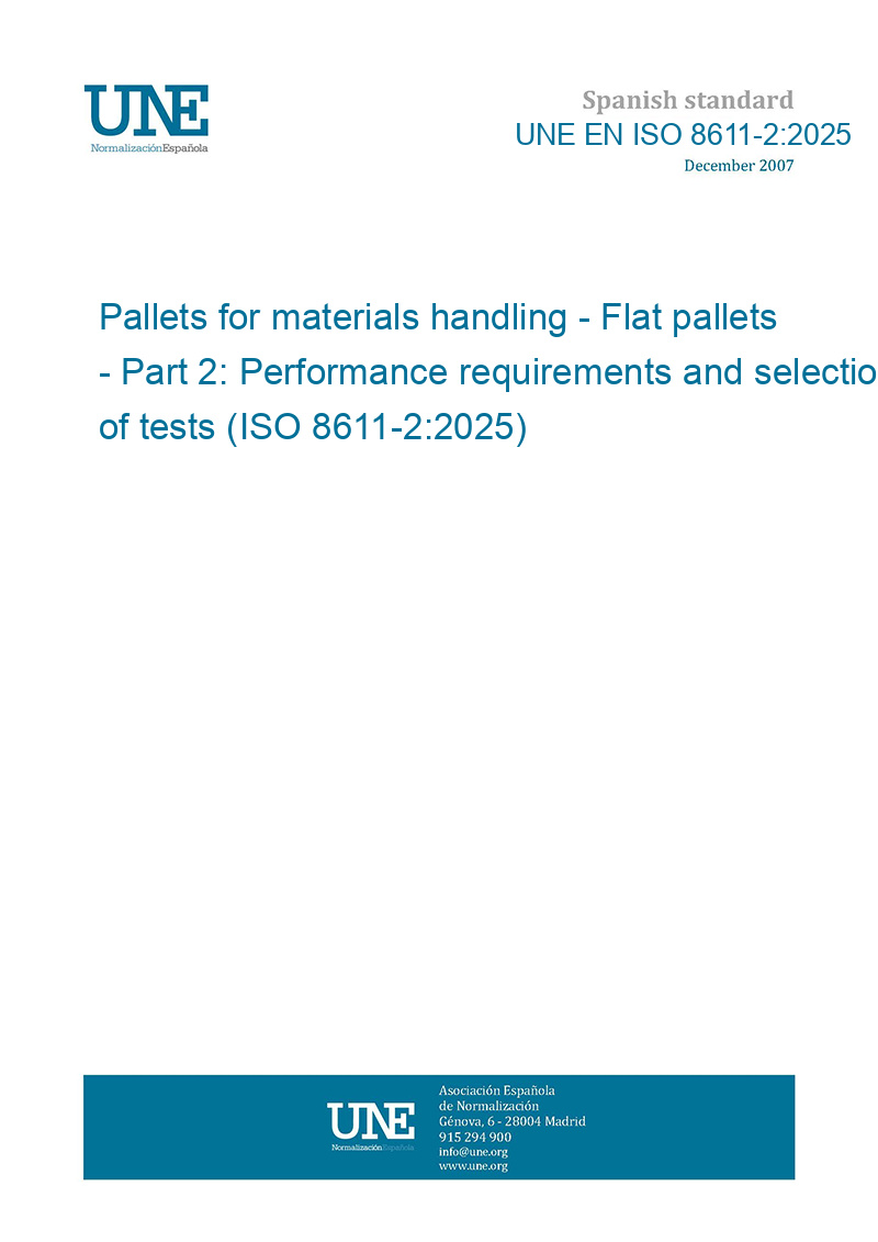Paletas para la manipulación de mercancías. Paletas planas. Parte 2: Requisitos para las prestaciones y selección de ensayos. (ISO 8611-2:2025).