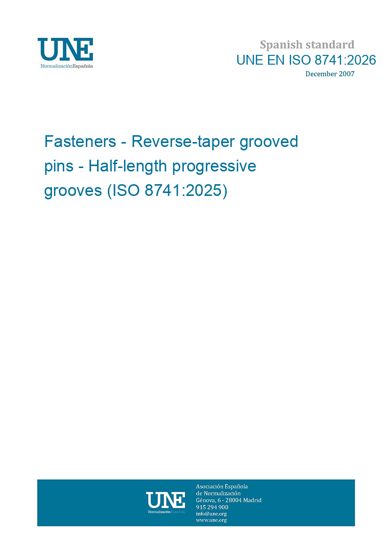 This standard UNE EN ISO 8741:2026 Fasteners - Reverse-taper grooved pins - Half-length progressive grooves (ISO 8741:2025) is classified in these ICS categories: