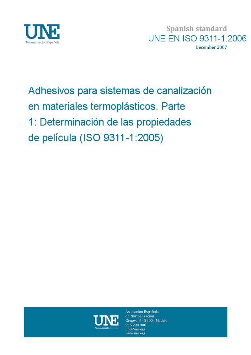 Adhesivos para sistemas de canalización en materiales termoplásticos. Parte 1: Determinación de las propiedades de película (ISO 9311-1:2005)