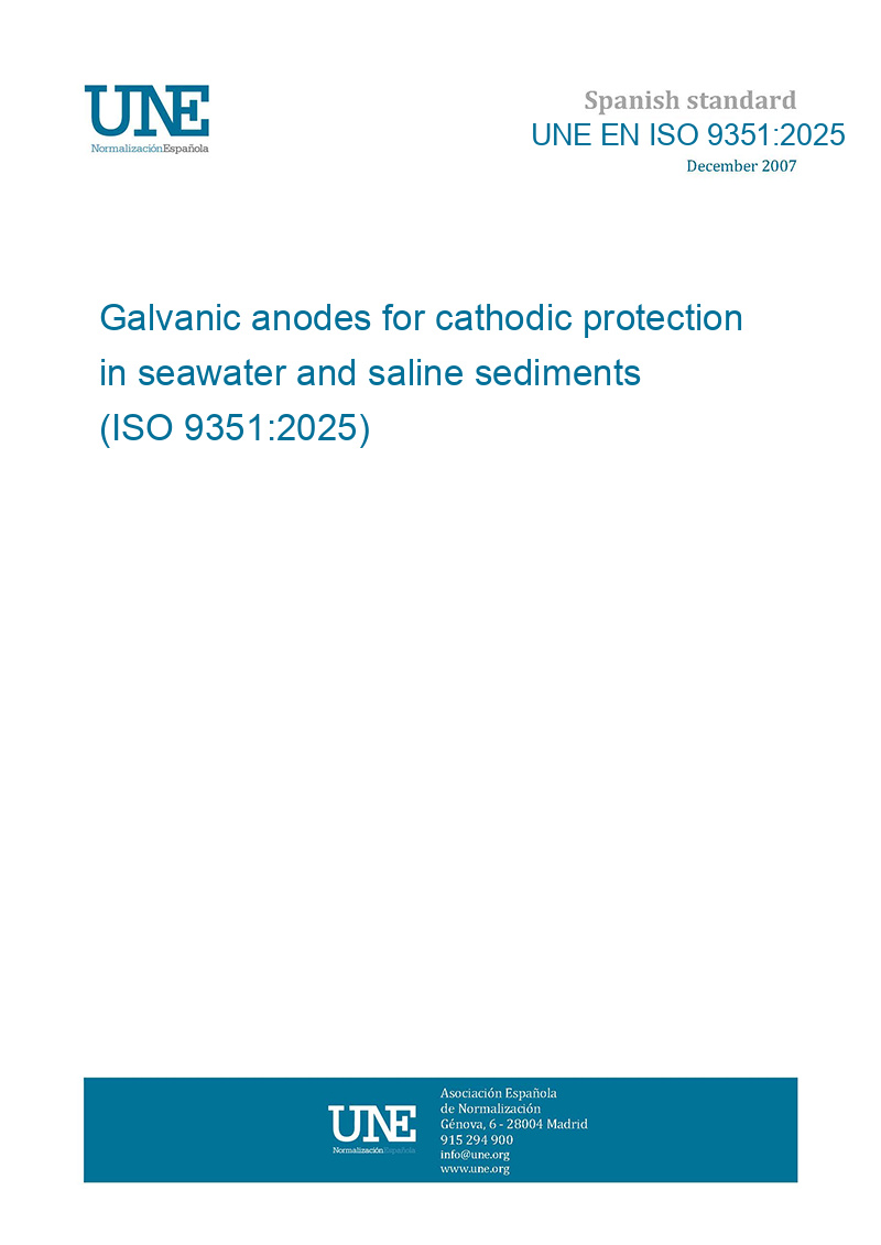 This standard UNE EN ISO 9351:2025 Galvanic anodes for cathodic protection in seawater and saline sediments (ISO 9351:2025) is classified in these ICS categories: