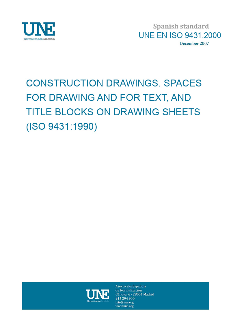 Dibujos de construcción. Espacio para dibujo y texto, cuadros de rotulación en formato dibujo. (ISO 9431:1990).