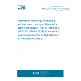 Tecnologías de la información. Aprendizaje, educación y formación. Metadatos para recursos de aprendizaje. Parte 1: Marco (ISO/IEC 19788-1:2024) (Ratificada por la Asociación Española de Normalización en noviembre de 2025.)