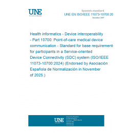 Health informatics - Device interoperability - Part 10700: Point-of-care medical device communication - Standard for base requirements for participants in a Service-oriented Device Connectivity (SDC) system (ISO/IEEE 11073-10700:2024) (Endorsed by Asociación Española de Normalización in November of 2025.)