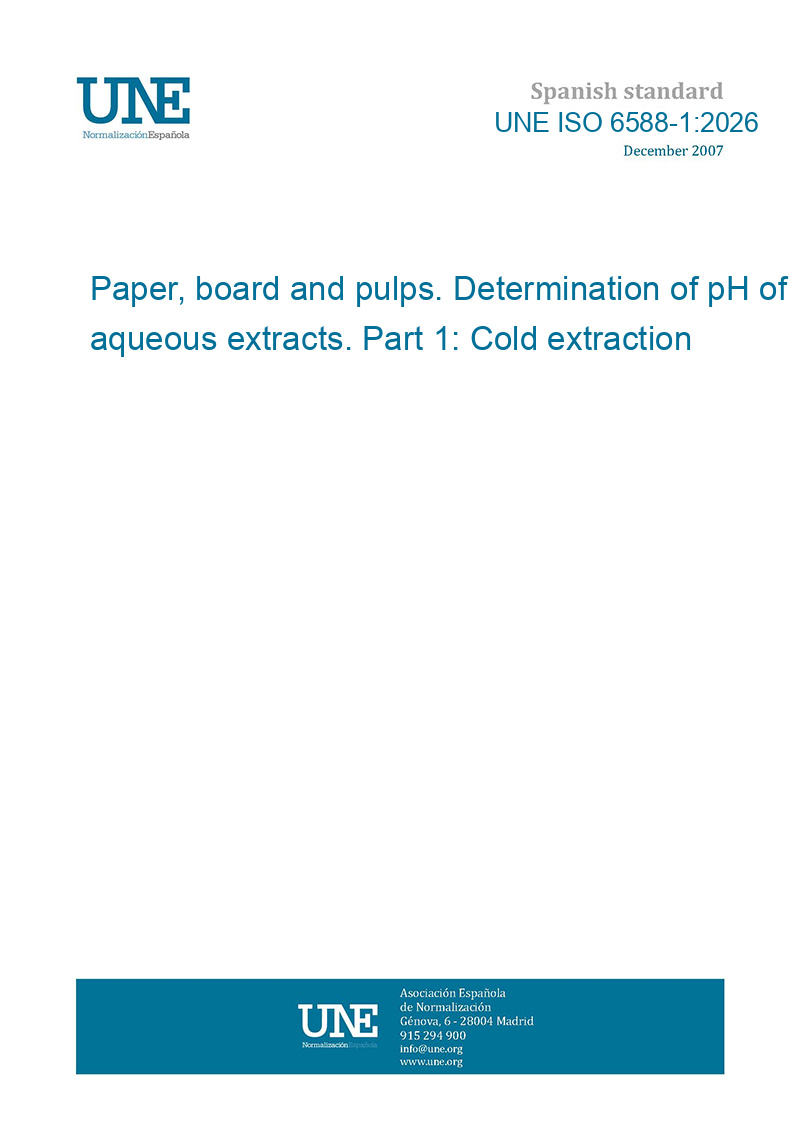 Papel, cartón y pasta. Determinación del pH de extractos acuosos. Parte 1: Extracción en frío.