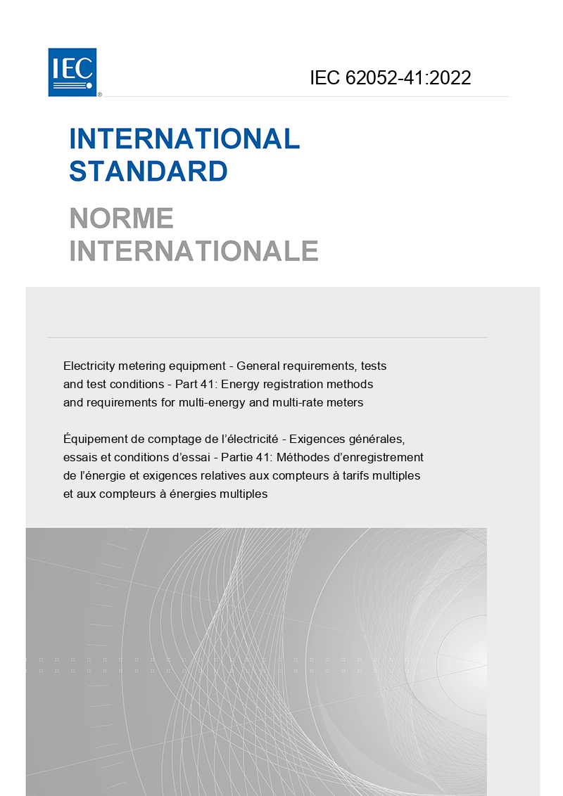 IEC 62052-41:2022 applies only to newly manufactured multi-energy and/or multi-rate static meters and it applies to their type tests only.