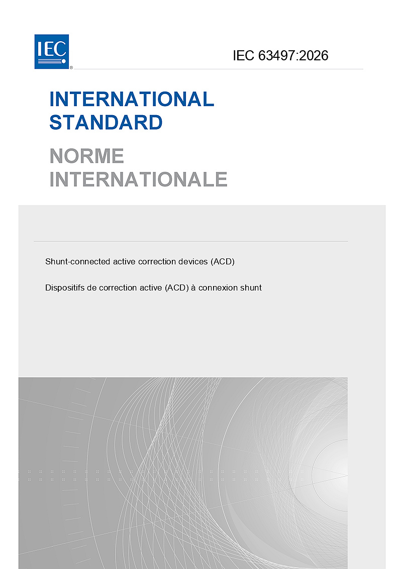 IEC 63497:2026, which is a product standard, is intended to specify the EMC, performance and safety requirements of shunt-connected active correction devices (ACD) with rated system voltages not exceeding 1 000 V AC or 1 500 V DC.