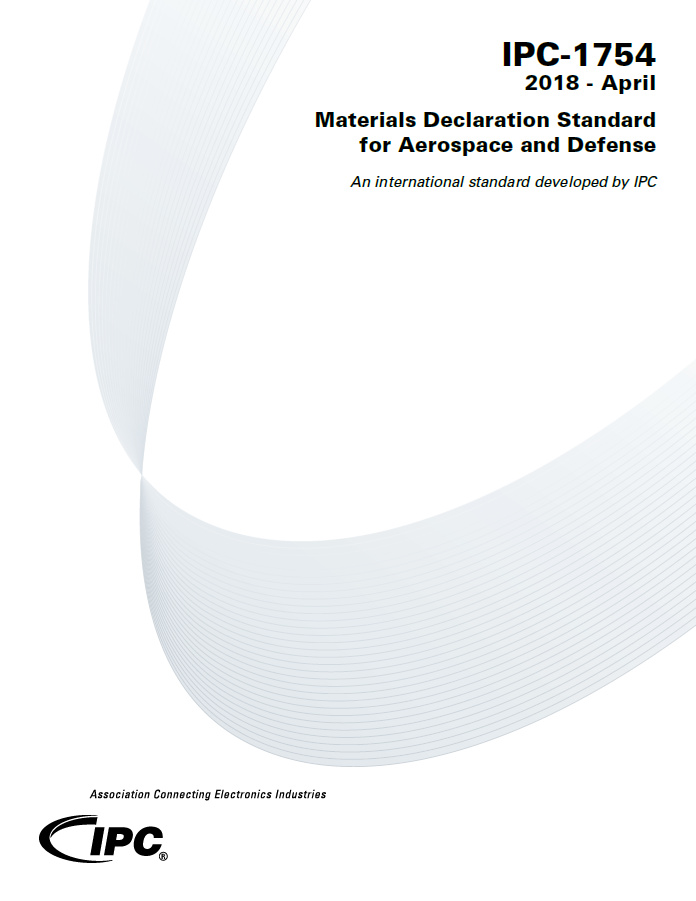 IPC 1754 Materials Declaration Standard for Aerospace and Défense is a brand new standard that establishes the requirements for exchanging material and substance data for products between suppliers and their customers for Aerospace and Defense, Heavy Equipment and other industries.