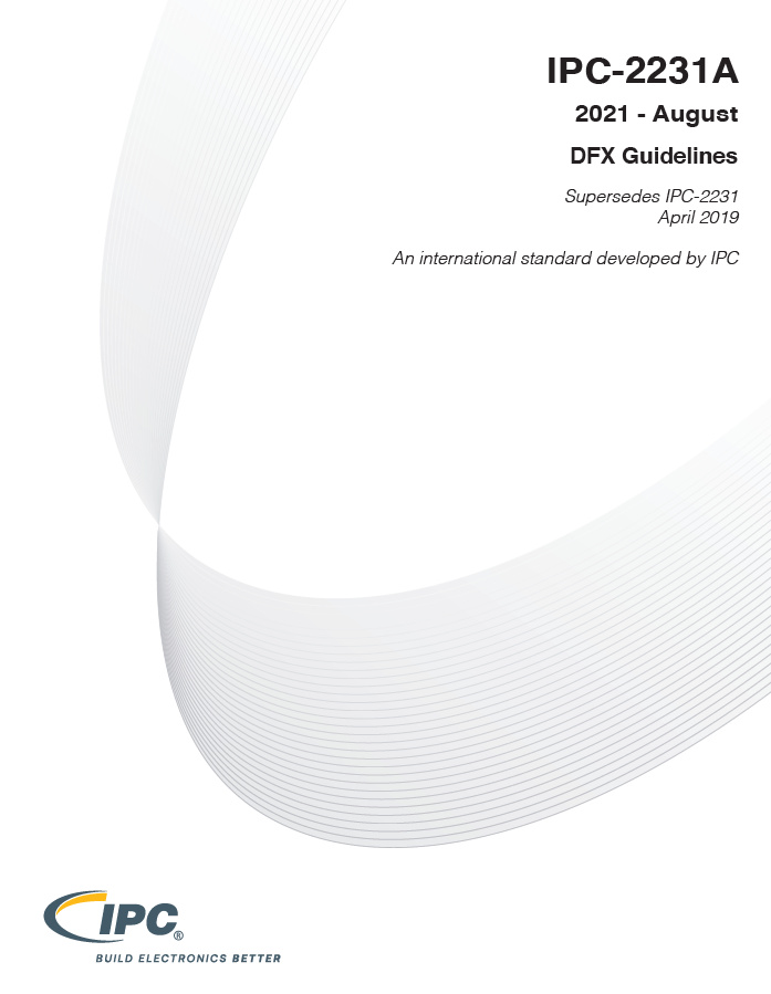 IPC-2231A provides guidelines for establishing a best practice methodology for use in developing a formal DFX (Design for Manufacturing, Fabrication, Assembly, Testability, Cost, Reliability, Environment, Reuse) process for layout of printed boards.
