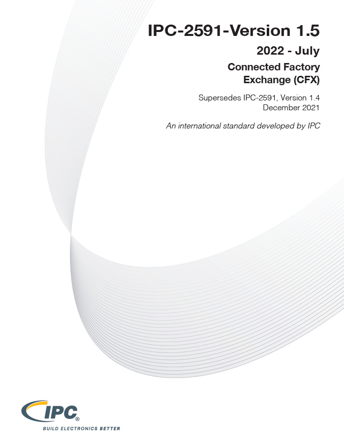 IPC-2591, CFX standard establishes the requirements for the omnidirectional exchange of information between manufacturing processes and associated host systems for assembly manufacturing. IPC-2591, CFX standard applies to communication between all executable processes in the manufacture of printed board assemblies, automated, semiautomated and manual, and is applicable to related mechanical assembly and transactional processes. IPC-2591, Version 1.5 includes the addition of cleaning and generic equipment required IPC-CFX capabilties for qualification, expanded explanations for production unit status and requirements for including message attachments to IPC-CFX messages. Visit www.ipc-cfx.org for software developer resources, training programs and information on the IPC-CFX-2591 Validation System and Qualified Products List (QPL).