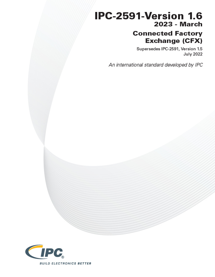 IPC-2591, Version 1.6 establishes the requirements for the omnidirectional exchange of information between manufacturing processes and associated host systems for assembly manufacturing. IPC-2591, Version 1.6 applies to communication between all executable processes in the manufacture of printed board assemblies, automated, semiautomated and manual, and is applicable to related mechanical assembly and transactional processes. IPC-2591, Version 1.6 includes the addition of an IPC-CFX message recorder, working time analysis breakdown, support for complex feeders, standardization of geometry rules and additional recipe controls. Visit www.ipc-cfx.org for software developer resources, training programs and information on the IPC-2591-CFX Validation System and Qualified Products List (QPL).