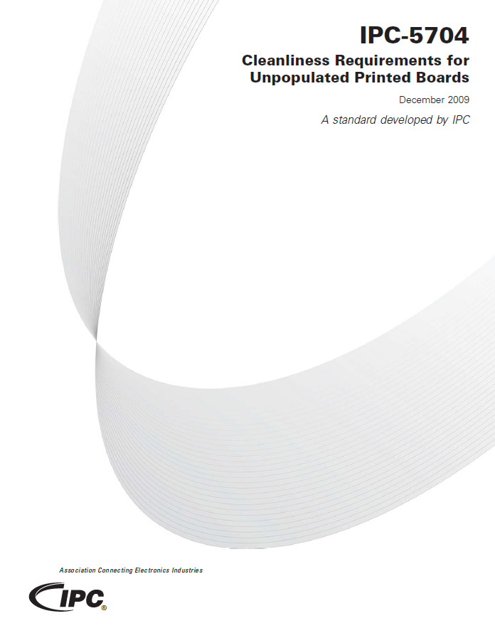 Printed board quality encompasses many parameters, cleanliness being one important parameter. This document defines the recommended general requirements for the cleanliness of unpopulated (bare) single, double-sided and multilayer printed boards. Coverage is given to Ion Chromatography (IC) testing and Ionic cleanliness testing for process control. 6 pages. Released December 2009.