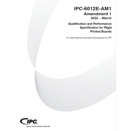 IPC-6012E-AM1 is an Amendent to the IPC-6012E that clarifes the distinction between receding and dewetting solder in reflowed SPb or HASL coatings. The Amendment also provides amended criteria for minimum external conductor thickness of the finished printed board and new acceptance criteria for the minimum thickness of internal plated layers