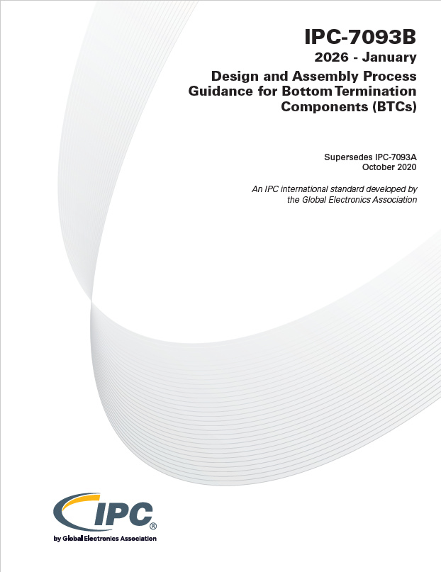 The IPC-7093B guideline provides essential design and assembly guidance for implementing bottom termination components (BTCs). Specifically, IPC-7093B provides guidelines on critical design, materials, assembly, inspection, repair, quality, and reliability issues associated with BTCs.